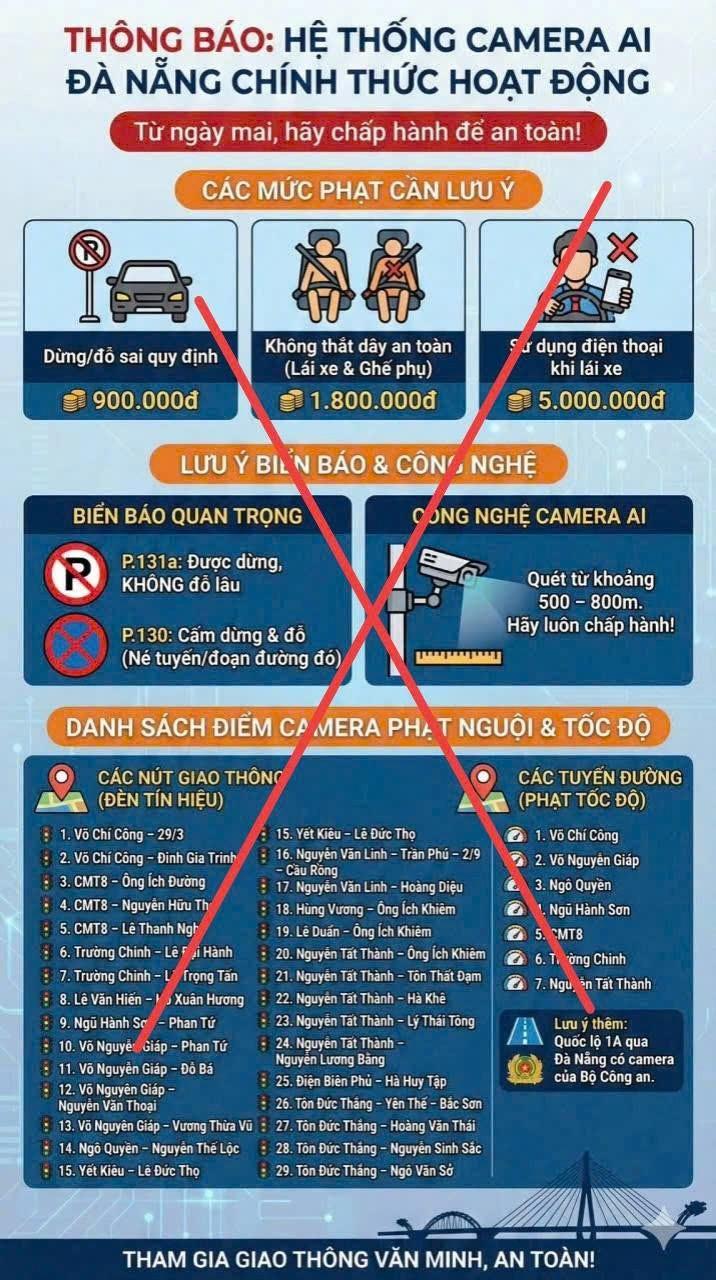Gần đây, trên mạng xã hội xuất hiện thông tin cho rằng từ ngày 13/12/2025, thành phố Đà Nẵng chính thức đưa vào hoạt động hệ thống camera giám sát ứng dụng trí tuệ nhân tạo (AI) tại một số nút giao thông.