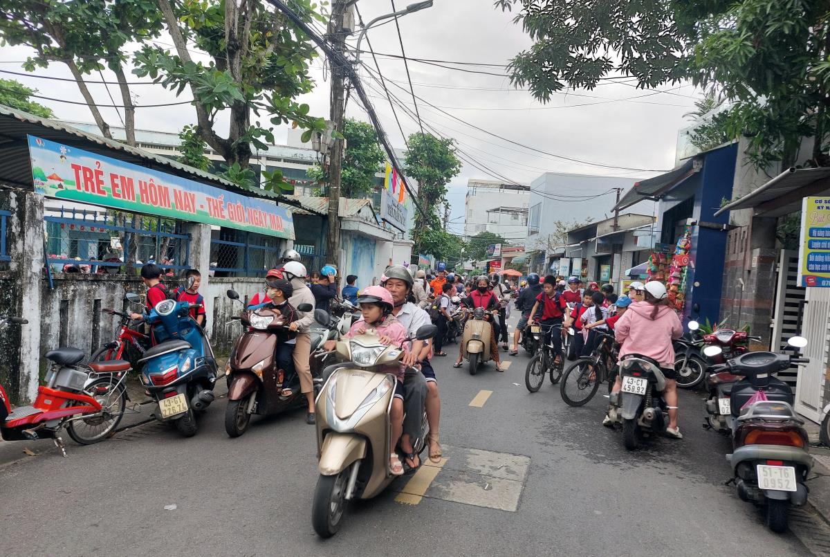 Phụ huynh học sinh Trường Tiểu học Trần Nhân Tông (phường Cẩm Lệ, Đà Nẵng) phản ánh, hiện nay việc đưa đón học sinh trước khu vực cổng trường trên đường Bình Thái 1 rất khó khăn.