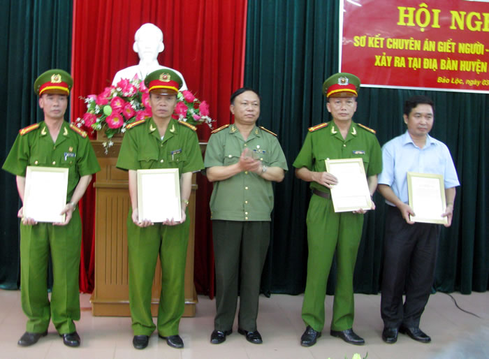 Chiều 3-9, tại CATP Bảo Lộc, Thiếu tướng Bùi Văn Sơn - Giám đốc CA tỉnh đã trực tiếp chủ trì cuộc họp rút kinh nghiệm quá trình đấu tranh chuyên án. Tại cuộc họp này, đại diện Ban Thi đua - Khen thưởng tỉnh đã công bố quyết định tặng Bằng khen của UBND tỉnh cho 2 tập thể và 5 cá nhân có thành tích xuất sắc đấu tranh chuyên án, đồng thời thưởng nóng cho BCA 10 triệu đồng. Tại đây Giám đốc CA tỉnh cũng trao thư khen và thưởng nóng cho 4 tập thể với số tiền 10 triệu đồng/tập thể, trao giấy khen của Giám đốc CA tỉnh cho 2 tập thể và 13 cá nhân.
