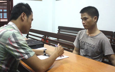 Cơ quan CSĐT CATP Đà Nẵng lấy lời khai Phạm Thanh Hiếu (“Hiếu chém”). |