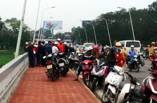 Hiện trường anh Hải tự vẫn và nhiều người dân hiếu kỳ theo dõi. |