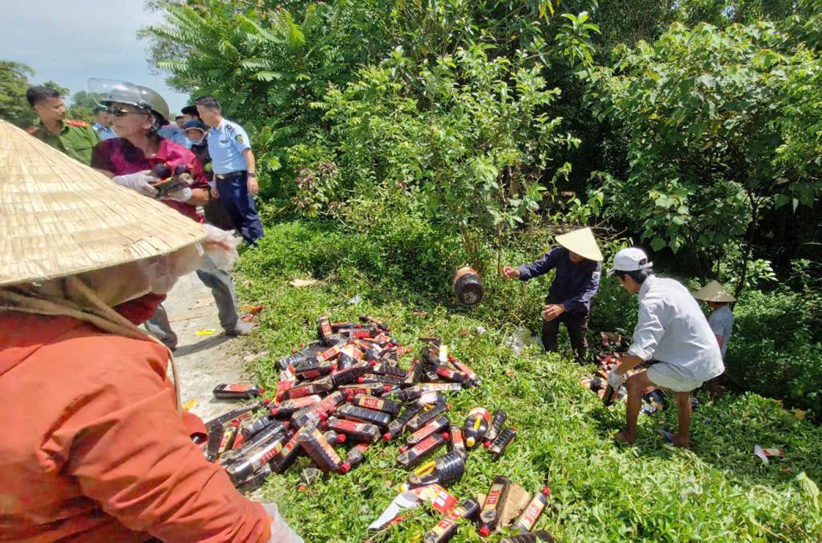 Qua kiểm đếm, có tất cả 950 chai nước mắm, nước chấm bị đổ bỏ. Các sản phẩm này đều đã hết hạn sử dụng. Qua điều tra ban đầu, cơ quan chức năng xác định, thông qua mạng xã hội, ông N.V.T. (trú đường Hùng Vương, TP Tam Kỳ, tỉnh Quảng Nam) đã thuê 2 người là N.P.T.V. và V.V.N. dọn dẹp kho, đưa số chai nước mắm, nước chấm trên đi đổ tại bãi rác với số tiền 400.000 đồng. Tuy nhiên, sau khi dọn dẹp kho, 2 người này không đưa lên bãi rác mà đem tới khu vực gần kênh thủy lợi Phú Ninh ở xã Tam Thái đổ bỏ. Làm việc với cơ quan Công an, ông T. khai mua nước mắm của Công ty CP chế biến thủy sản Thanh Hóa, do hết hạn sử dụng nên đã thuê người chở đi đổ bỏ.