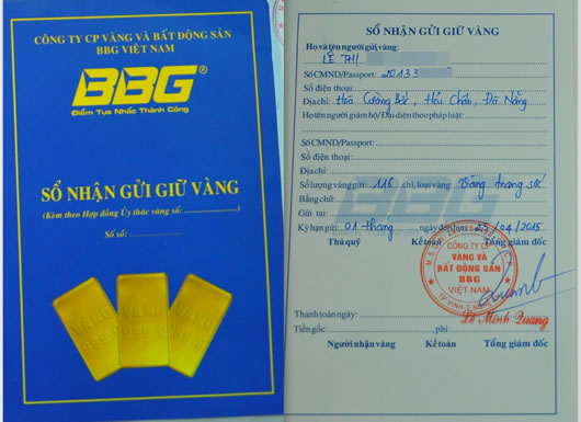 Sổ nhận gửi vàng do BBG cấp cho những người ủy thác gửi vàng. |