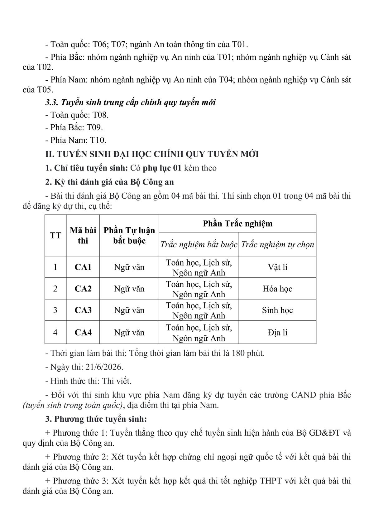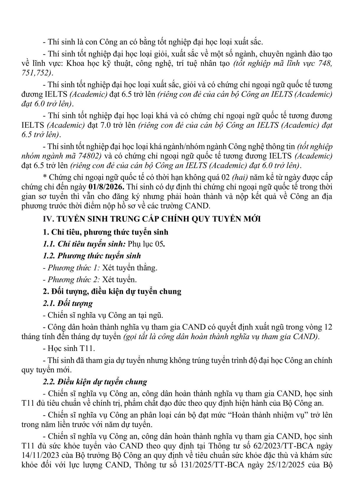 Thông tin tuyển sinh chính quy tuyển mới trong Công an nhân dân năm 2026