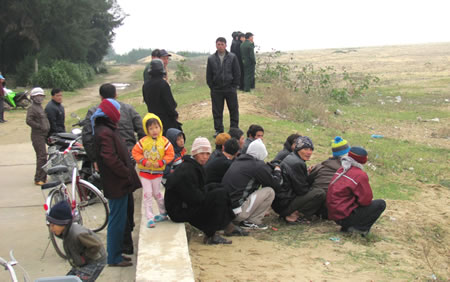 Có mặt ở bãi biển để chờ tin của các thuyền viên, một ngư dân ở làng Cồn Sẻ kể lại: “Ngày 2-1 cũng tròn một năm ngày 7 ngư dân của làng bỏ mạng trên biển. 1 giờ ngày 2-1-2011, tàu QB-3238 của anh Phạm Được (27 tuổi) cùng 6 thanh niên khác của làng Cồn Sẻ đánh cá ở vùng biển cách đảo Cô Tô, Quảng Ninh khoảng 10 hải lý thì bị lốc xoáy nhấn chìm... Các anh mất đi để lại nỗi đau, mất mát lớn cho cha mẹ, vợ con, người thân”. Và, hôm nay, một lần nữa, dân làng Cồn Sẻ lại chìm trong tang thương.