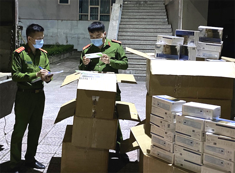 Ngày 16-3, Phòng Cảnh sát kinh tế - Công an tỉnh Hà Tĩnh đang tạm giữ lô hàng gồn 3.400 bộ kit test nhanh Covid-19 để xử lý theo quy định. Theo đó, khoảng 19 giờ ngày 15-3, trên QL8A (thuộc địa phận xã Sơn Tây, huyện Hương Sơn, Hà Tĩnh), Phòng Cảnh sát kinh tế kiểm tra xe tải mang BKS 38C-042.54, phát hiện có 9 thùng hàng có chứa 3.400 bộ kit test nhanh Covid-19 do nước ngoài sản xuất, trị giá khoảng 130 triệu đồng. Tại thời điểm kiểm tra, lái xe Phạm Dược (1967, trú xã Sơn Lĩnh, huyện Hương Sơn, Hà Tĩnh) không xuất trình được hóa đơn chứng từ chứng minh tính hợp pháp của hàng hoá.