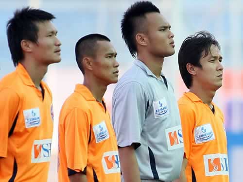 Nguyễn Thanh Bình (thứ 2 từ phải sang) đã khẳng định tên tuổi trong màu áo SHB.Đà Nẵng. |