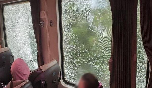Kính trên tàu SE7 bị nhóm học sinh ném vỡ. |