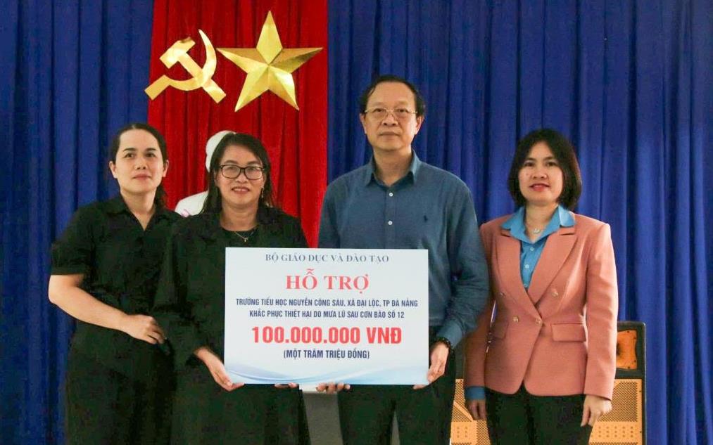 Tại buổi làm việc, Bộ GD-ĐT đã trao tặng 750 triệu đồng hỗ trợ các cơ sở giáo dục, trường học trên địa bàn TP Đà Nẵng khắc phục thiệt hại do mưa lũ. Cùng với đó, Bộ còn trao tặng 125.000 bản sách giáo khoa trị giá 2,5 tỷ đồng cho học sinh vùng lũ nhằm giúp các em sớm ổn định việc học. Đoàn công tác cũng tặng quà hỗ trợ 10 triệu đồng cho gia đình giáo viên bị thiệt mạng và 5 triệu đồng cho mỗi gia đình học sinh tử nạn trong đợt mưa lũ vừa qua, thể hiện sự quan tâm, sẻ chia của ngành giáo dục đối với những mất mát, đau thương của thầy trò và người dân vùng bị ảnh hưởng.