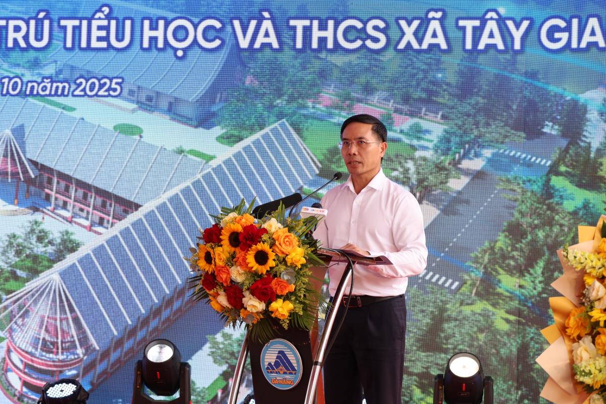 Thay mặt lãnh đạo thành phố phát biểu tại buổi lễ, Chủ tịch UBND TP Đà Nẵng Phạm Đức Ấn cho rằng, Tây Giang là vùng đất giàu truyền thống cách mạng, có vị trí địa chính trị quan trọng về quốc phòng - an ninh. Việc đầu tư xây dựng trường phổ thông nội trú, bán trú tại đây không chỉ đáp ứng cho nhu cầu học tập của gần 2.000 con em hiện nay của đồng bào dân tộc thiểu số mà đảm bảo nhu cầu lâu dài của cấp học tiểu học và trung học trên địa bàn xã Tây Giang.