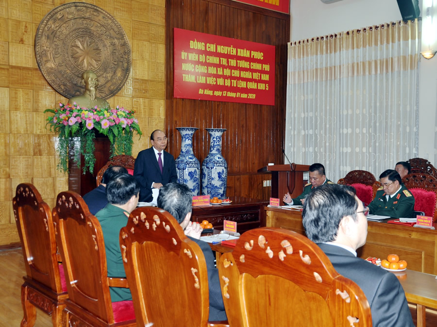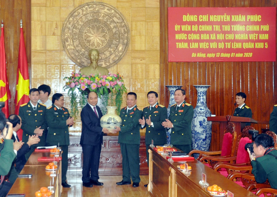 Ngày 13-1-2020, Thủ tướng Chính phủ Nguyễn Xuân Phúc cùng đoàn công tác Chính phủ đã đến thăm, làm việc với Bộ Tư lệnh Quân Khu 5. Cùng đi có Bộ trưởng, UVTW Đảng, Chủ nhiệm Văn phòng Chính phủ Mai Tiến Dũng; Thượng tướng Phan Văn Giang, Ủy viên Trung ương Đảng, Ủy viên Thường vụ Quân ủy Trung ương, Tổng Tham mưu trưởng QĐND Việt Nam, Thứ trưởng Bộ Quốc phòng. Đoàn cán bộ lãnh đạo TP. Đà Nẵng do Phó Bí thư Thường trực Thành ủy Nguyễn Văn Quảng; Chủ tịch UBNDTP Huỳnh Đức Thơ cũng dự buổi làm việc.