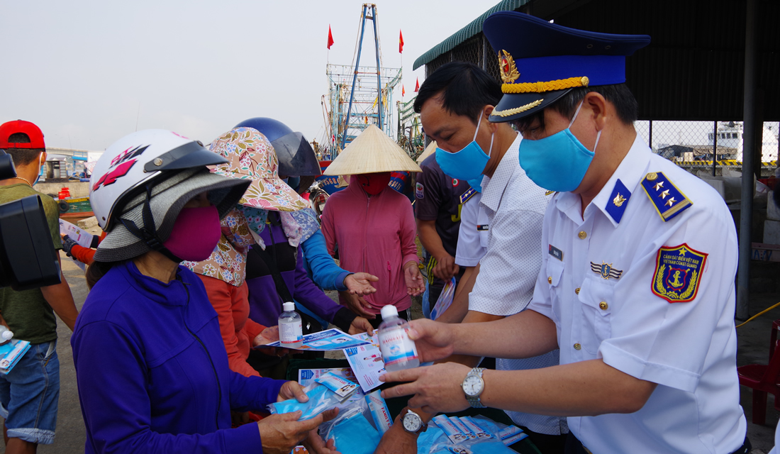 Theo Phó Thủ tướng Vũ Đức Đam, Quyết định công bố dịch bệnh trên cả nước của Thủ tướng làm tăng thêm tinh thần, trách nhiệm của các lực lượng chống dịch trên từng địa bàn, trong từng ngành. Trong ảnh: Lực lượng cảnh sát biển hỗ trợ ngư dân phòng chống dịch Covid-19. |