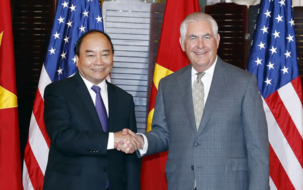 | Trưa 31-5 (giờ Washington), Thủ tướng Chính phủ Nguyễn Xuân Phúc đã dự tiệc chiêu đãi cấp Nhà nước của chính quyền Hoa Kỳ do Ngoại trưởng Hoa Kỳ Rex Tillerson chủ trì tại trụ sở Bộ Ngoại giao Hoa Kỳ. |