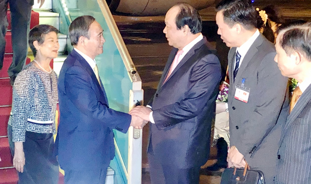 Nhận lời mời của Thủ tướng Chính phủ Nguyễn Xuân Phúc và Phu nhân, Thủ tướng Nhật Bản Suga Yoshihide và Phu nhân thăm chính thức Việt Nam từ ngày 18 đến 20-10. Đón Thủ tướng Nhật Bản Suga Yoshihide và Phu nhân Suga Mariko tại sân bay quốc tế Nội Bài có: Bộ trưởng, Chủ nhiệm Văn phòng Chính phủ Mai Tiến Dũng; Thứ trưởng Bộ Ngoại giao Lê Hoài Trung; Đại sứ Việt Nam tại Nhật Bản Vũ Hồng Nam; đại diện cơ quan Bộ Ngoại giao, Văn phòng Chính phủ... Về phía Nhật Bản có Đại sứ Nhật Bản tại Việt Nam Yamada Takio và cán bộ Đại sứ quán Nhật Bản tại Việt Nam.