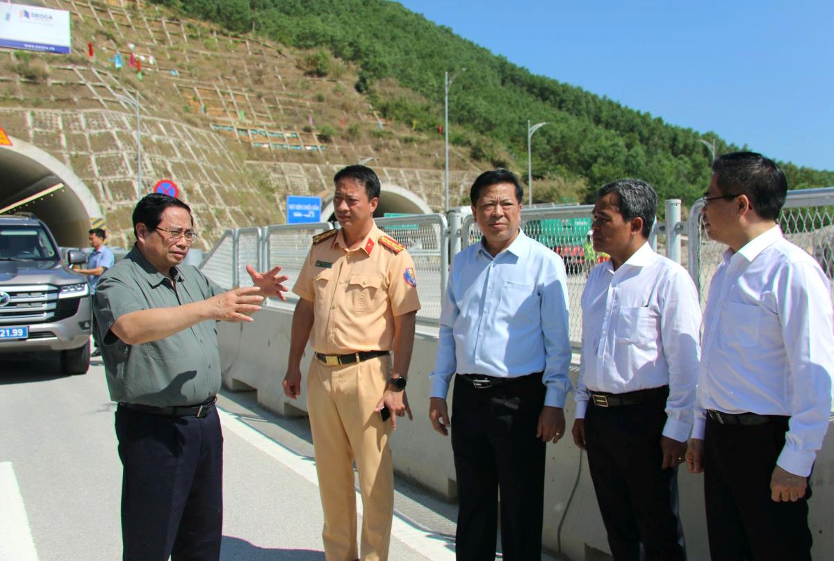 Tại hiện trường, Thủ tướng đã kiểm tra một số hạng mục quan trọng như nút giao giữa cao tốc với Quốc lộ 24, hầm số 1 và hầm số 2. Đánh giá tiến độ triển khai, Thủ tướng ghi nhận, biểu dương những nỗ lực của chủ đầu tư là Ban Quản lý Dự án 2 (Bộ Xây dựng) cùng các nhà thầu thi công đã tập trung nhân lực, thiết bị, bám sát chỉ đạo của Chính phủ để bảo đảm tiến độ đề ra.