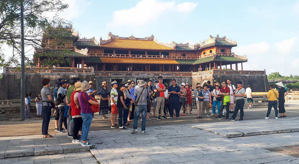 Du khách tham quan quần thể di tích cố đô Huế. |
