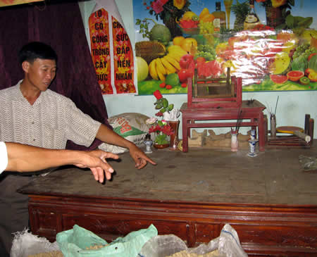 Bàn thờ của gia đình chị Chúng - nơi chị Thiệp đã từng nằm vạ. |