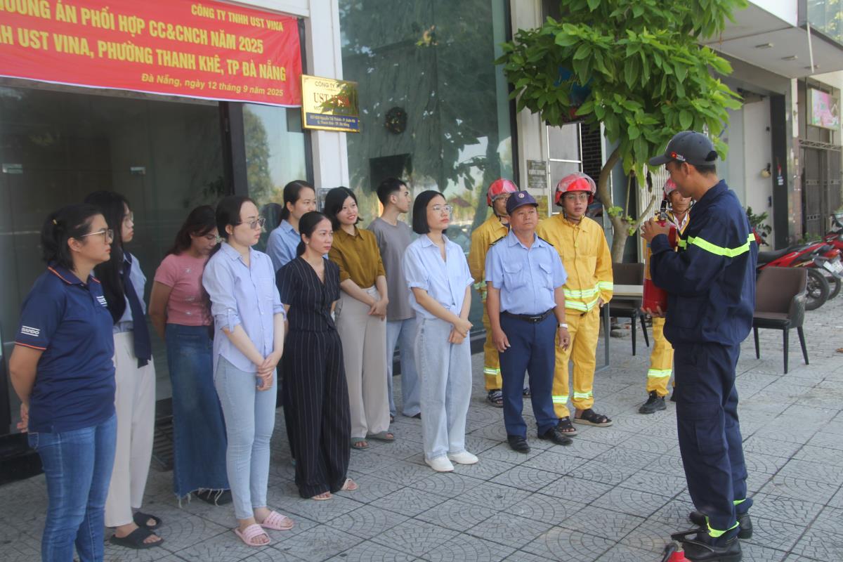 Trước đó một ngày, Phòng Cảnh sát PCCC&CNCH Công an TP Đà Nẵng cũng đã tổ chức diễn tập tại Công ty TNHH UST VINA, địa chỉ 637-639 đường Nguyễn Tất Thành, TP Đà Nẵng.