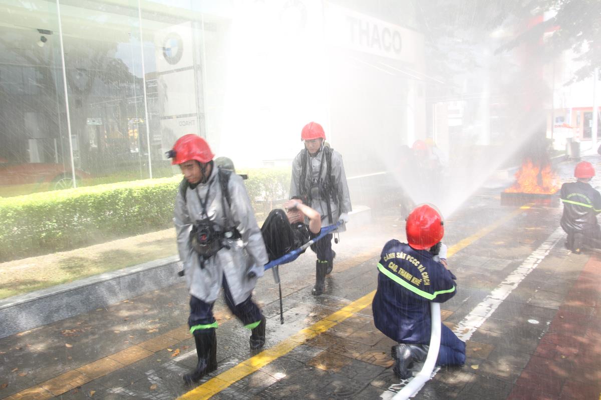 Chiều ngày 13-9, Phòng Cảnh sát PCCC&CNCH Công an TP Đà Nẵng đã tổ chức thực tập phương án phối hợp chữa cháy và cứu nạn cứu hộ tại điểm kinh doanh số 2, Showroom BMW, trực thuộc Công ty TNHH Thaco Auto Đà Nẵng, địa chỉ 356 Điện Biên Phủ.