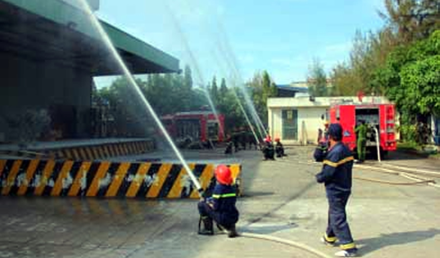 Chiều 4-4, Cảnh sát (CS) PCCC CATP Đà Nẵng phối hợp công ty TNHH Dinh Dưỡng 3A, đường số 5, KCN An Đồn tổ chức thực tập phương án PCCC. Tình huống cháy xảy ra tại kho chứa hàng của công ty, nguyên nhân cháy do chập điện. Lúc này trong kho chứa có nhiều vật liệu đóng gói thành phẩm như thùng các-tông, nhựa... nên đám cháy nhanh chóng bao trùm toàn bộ kho hàng. Ngay khi phát hiện cháy, lực lượng tại chỗ triển khai dập lửa bằng bình chữa cháy cá nhân, di chuyển tài sản, cứu người bị nạn và điện báo lực lượng chữa cháy 114. Nhận tin báo, CS PCCC CATP xuất 4 xe chữa cháy cùng hàng chục CBCS đến hiện trường khẩn trương dập tắt đám cháy sau 30 phút...