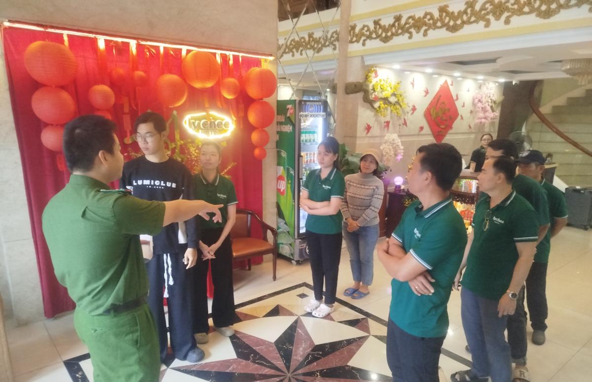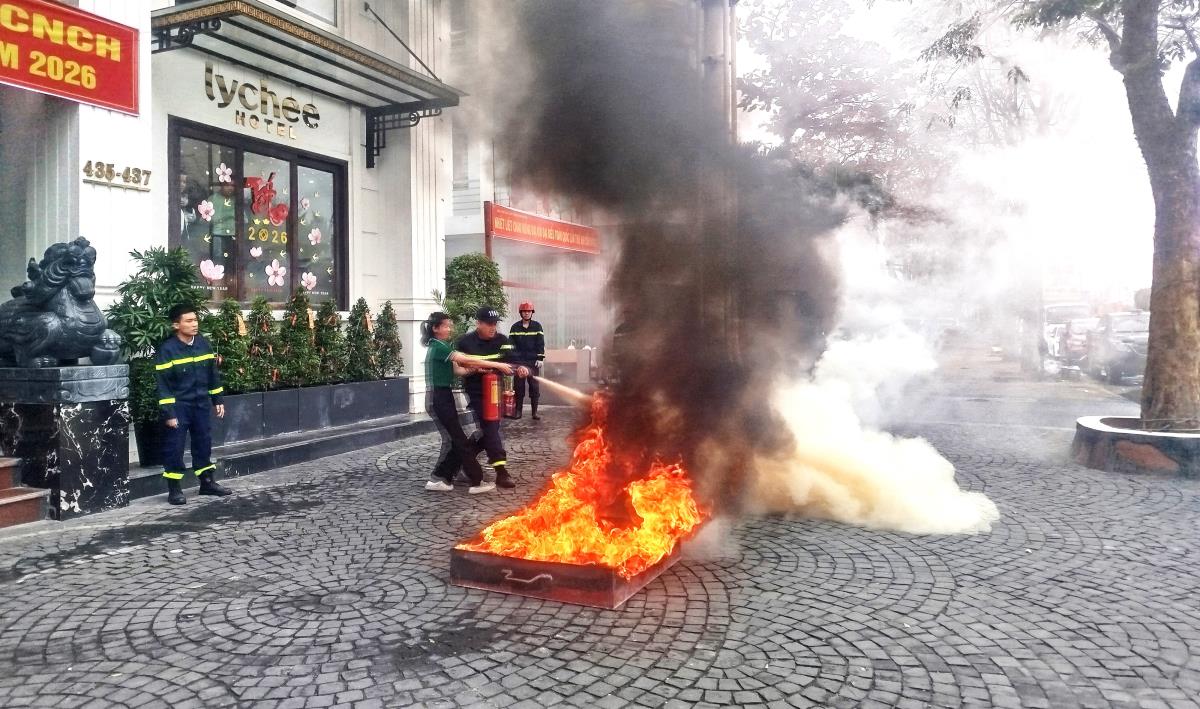 Tình huống giả định cháy là vào lúc 9 giờ 30 phút ngày 29-1, Trung tâm Thông tin chỉ huy điều hành nhận được tin báo cháy qua số máy 114 tại Khách sạn LyChee. Xác định đây là đám cháy phức tạp, địa điểm cháy tại tầng 3 của cơ sở, trực ban đã nhanh chóng báo cáo lãnh đạo, đồng thời điện báo cho các đội nghiệp vụ, các đơn vị, địa phương xuất xe đến đám cháy.