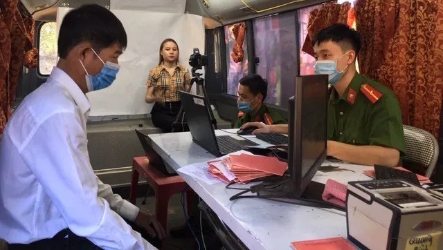 Công an tỉnh Quảng Bình kết hợp cấp Căn cước công dân lưu động trong dịp bầu cử.