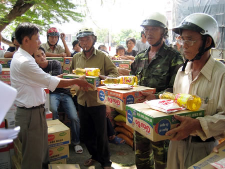 Chiều 15-10, chúng tôi trở lại để trao tặng 25.000 cuốn vở cho các em học sinh cấp 1, cấp 2 và 6 tấn gạo cho người dân, CBCS CA tỉnh bị thiệt hại do lũ tại Quảng Trị, Quảng Bình, Hà Tĩnh từ nguồn đóng góp của Cty TNHH Hữu Thanh 100 triệu đồng; Cty TNHH Du lịch và giải trí quốc tế Hoàng Đạt 150 triệu đồng, cá nhân anh Lý Tiết Dũng - Chủ tịch HĐQT Cty Chứng khoán Đà Nẵng 10 triệu đồng... Đến sáng 16-10, Báo cũng đã vận chuyển hơn 100 suất quà, mỗi suất gồm 30 kg gạo, 1 gói mì chính (loại 1kg) và 5 lít dầu ăn ủng hộ 31 hộ đồng bào người dân tộc Chít và 71 hộ người Kinh tại xã Hương Liên, H. Hương Khê, Hà Tĩnh.
