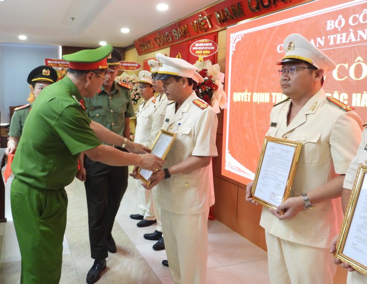 Tại buổi Lễ, thừa ủy quyền của Bộ trưởng Bộ Công an và Giám đốc Công an thành phố, Thượng tá Nguyễn Thanh Trung, Trưởng phòng Tổ chức cán bộ đã công bố các quyết định nâng lương cấp bậc hàm Đại tá, thăng cấp bậc hàm Đại tá, thăng cấp bậc hàm Thượng tá đối với 9 đồng chí.