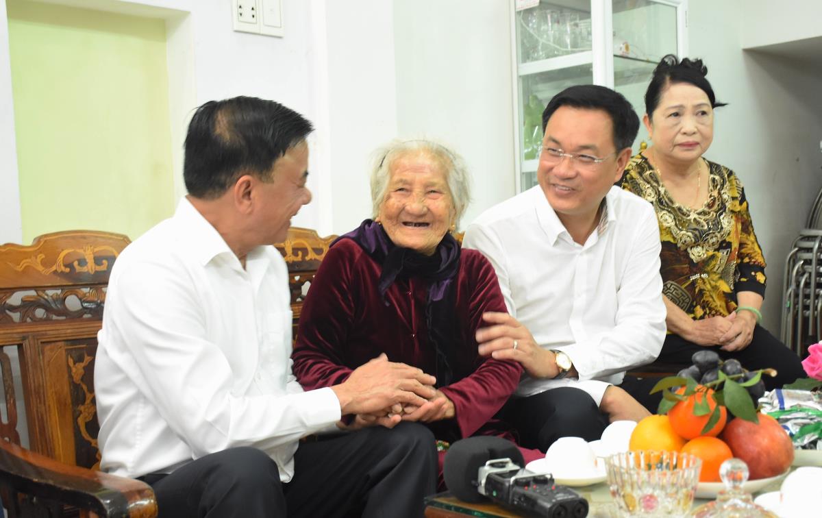 Thường trực Ban Bí thư và đoàn công tác thăm, chúc Tết Mẹ Việt Nam Anh hùng Nguyễn Thị Sự.