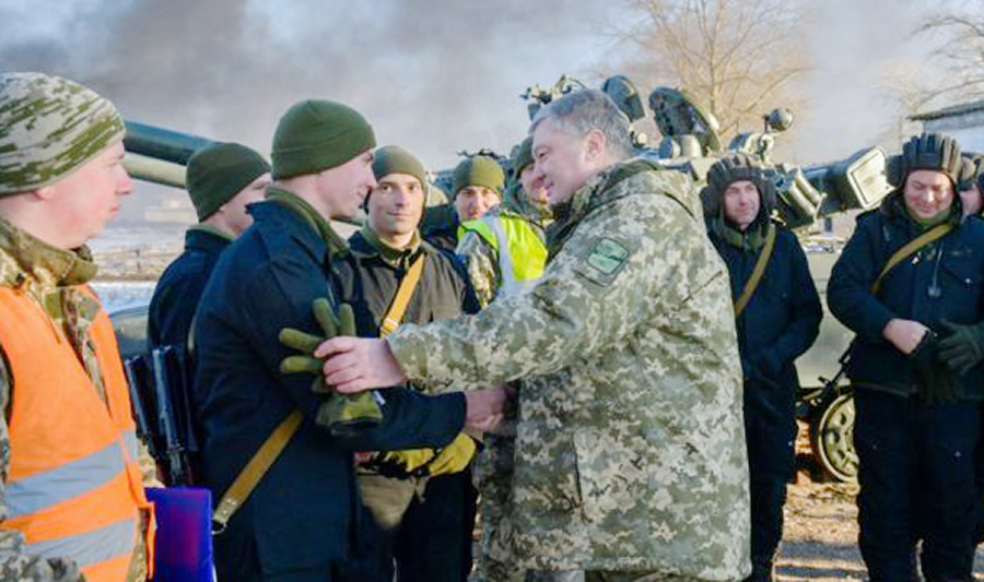 | Tổng thống Poroshenko thăm các binh sĩ ở Chernihiv, miền bắc Ukraine.Ảnh: BBC |