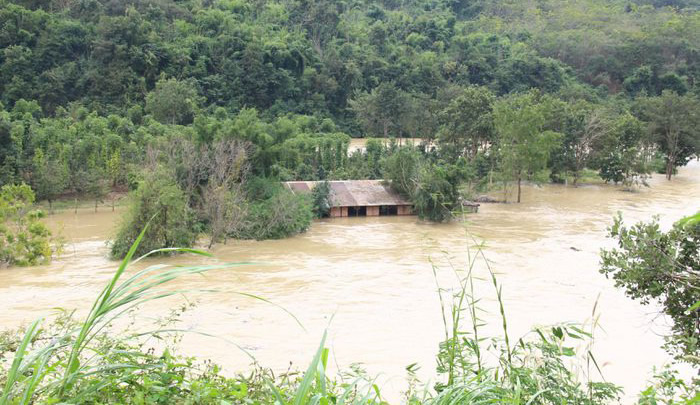 Thủy điện Buôn Kuốp xả nước ồ ạt khiến cho nhiều tài sản của người dân bị nhấn chìm trong nước. |