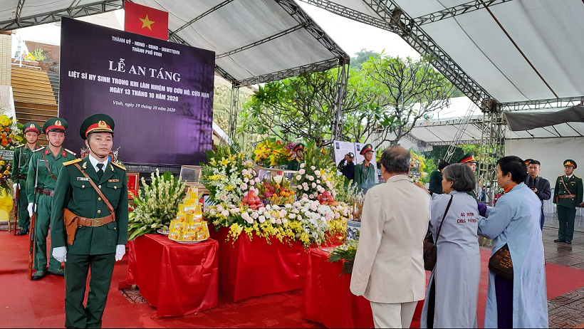 Trong ngày 19-10, Bộ Tư lệnh Quân khu 4, chính quyền địa phương, các cơ quan đoàn thể, người thân, bà con lối xóm đã có mặt tại Nghĩa trang liệt sĩ TP Vinh và gia đình các liệt sỹ để làm lễ viếng. Trong đó, lễ an táng ba liệt sĩ: Thượng tá Lê Tất Thắng, Thiếu tá Nguyễn Cảnh Cường, Đại úy Đinh Văn Trung diễn ra vào ngày 19-10, tại Nghĩa trang liệt sĩ TP Vinh. Lễ an táng Thượng tá Nguyễn Tiến Dũng vào hồi 8 giờ ngày 20-10, tại Nghĩa trang liệt sĩ H.Nghi Lộc.