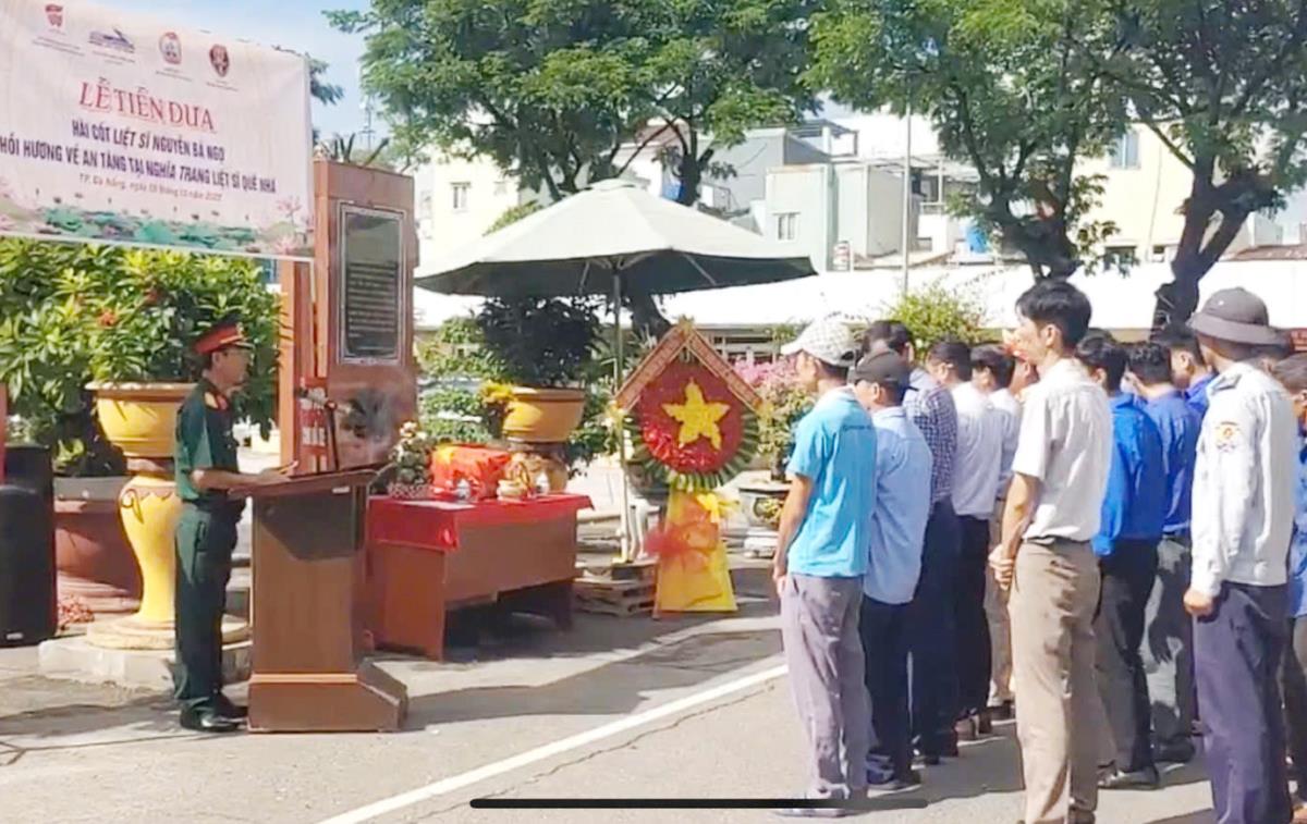Ngày 3-10, tại ga Đà Nẵng, Đội CSGT đường sắt số 2 (Phòng 6, Cục CSGT) phối hợp Chi nhánh khai thác đường sắt Nghĩa Bình, Đội CSGT số 1, Phòng CSGT Công an TP Đà Nẵng, Văn phòng đại diện Hội hỗ trợ gia đình liệt sĩ Việt Nam miền Trung tại TP Đà Nẵng và Bộ Chỉ huy Quân sự thành phố tổ chức lễ tiễn đưa hài cốt liệt sĩ Nguyễn Bá Ngọ (sinh năm 1954) về an táng tại Nghĩa trang liệt sĩ xã Khoái Châu, tỉnh Hưng Yên.