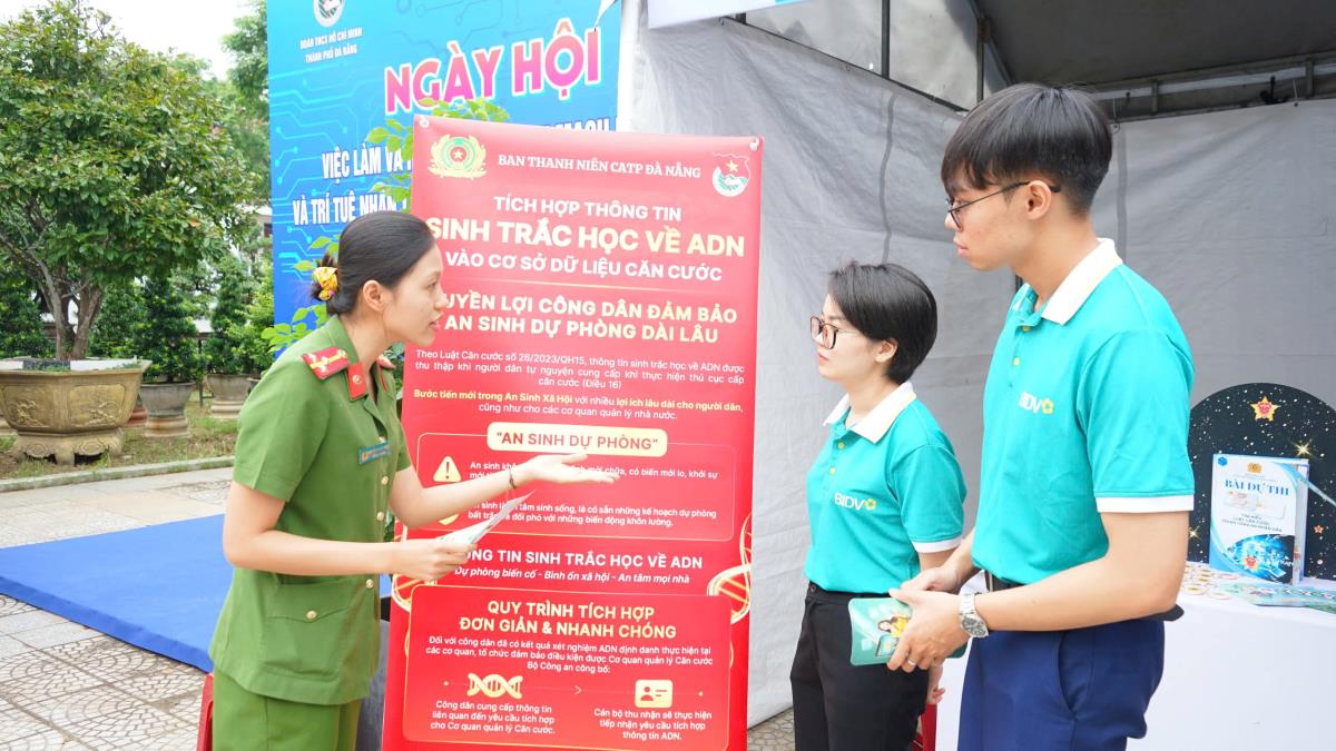 Đáng chú ý, Thanh niên Công an TP đã thành lập "Tổ thanh niên xung kích Đề án 06/CP" và Đội "Bình dân học vụ số". Trong thời gian ngắn, tuổi trẻ Công an TP đã tổ chức 14 đợt cao điểm hướng dẫn, hỗ trợ hơn 1.200 người dân thực hiện dịch vụ công trực tuyến và kích hoạt thành công hơn 1.500 tài khoản định danh điện tử tại các điểm công cộng. Đội ngũ thanh niên Công an cũng là lực lượng chủ lực hỗ trợ người dân góp ý dự thảo sửa đổi, bổ sung Hiến pháp 2013 thông qua ứng dụng VNeID, góp phần đưa Đà Nẵng xếp thứ hạng cao trong các tỉnh, thành về tỷ lệ tham gia. Không chỉ dừng lại ở hỗ trợ hành chính, các đội hình thanh niên trực tiếp hướng dẫn làm thủ tục lên máy bay, làm căn cước, định danh điện tử tận nhà cho người già, người khuyết tật tại bệnh viện, sân bay…
