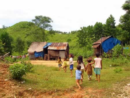 KDT trống hoác, không tường rào cổng ngõ, không bóng cây xanh. Hơn chục đứa trẻ, có đứa trần truồng xúm lại khi thấy người lạ. Tôi lôi máy ảnh ra chụp, chúng ù té chạy, vài đứa khóc ré lên. Chúng là con cháu của các gia đình ở quanh KDT. 12 ngôi nhà dựng tạm bằng gỗ, tre nứa, lợp và che chắn bằng tôn. Bà Hồ Thị Phú, có nhà nằm bên KDT, cho biết: “Nhà dột nát nhưng huyện không cho nhận tiền hỗ trợ theo Chương trình 134 để sửa chữa. Ở đây sợ lắm. Gió lốc hồi tháng 4 vừa rồi tôn bay hết, mới lợp lại đó”. Bà Phú cho biết: "Làm rẫy thì xa, mùa này chỉ trồng được sắn nhưng con chuột nó phá hết. Nhà mô cũng thiếu cái ăn. Có thấy ai nói chi mô...”. Giọng người đàn bà Ca Dong chùng xuống.