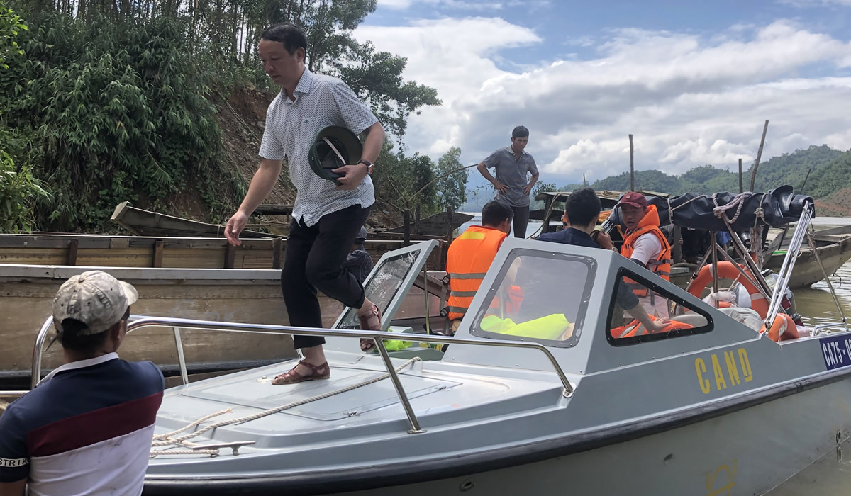 Phó Chủ tịch UBND tỉnh Phan Thiên Định dẫn đầu Đoàn CHCN đưa thi thể và 19 công nhân từ TĐ Rào Trăng 4 về lòng hồ TĐ Hương Điền. |