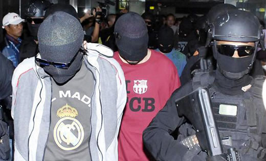 | Cảnh sát chống khủng bố Densus 88 bắt 4 người Thổ Nhĩ Kỳ vì nghi có liên quan đến IS hôm 14-9. Ảnh: AFP |
