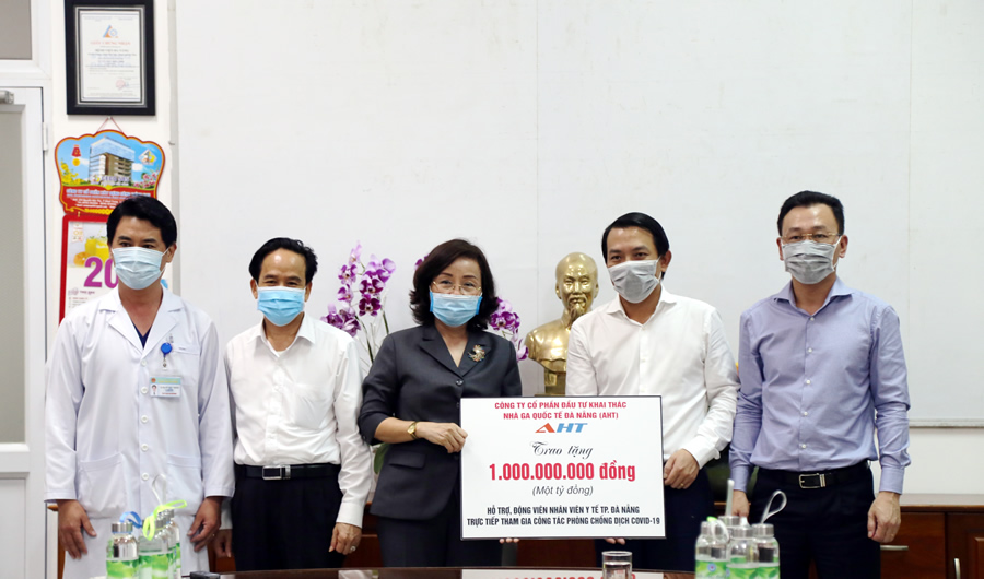 Ngày 20-3, tại Bệnh viện Đà Nẵng, Sở Y tế thành phố tiếp nhận 1 tỷ đồng từ Công ty CP đầu tư khai thác nhà ga quốc tế Đà Nẵng (AHT), hỗ trợ 15 tập thể, 16 cá nhân trong ngành y tế tham gia trực tiếp công tác phòng, chống Covid-19 thời gian qua. Đến dự có Ủy viên Trung ương Đảng, Bí thư Thành ủy, Trưởng đoàn đại biểu Quốc hội thành phố Trương Quang Nghĩa; Phó Chủ tịch UBND thành phố Lê Trung Chinh.