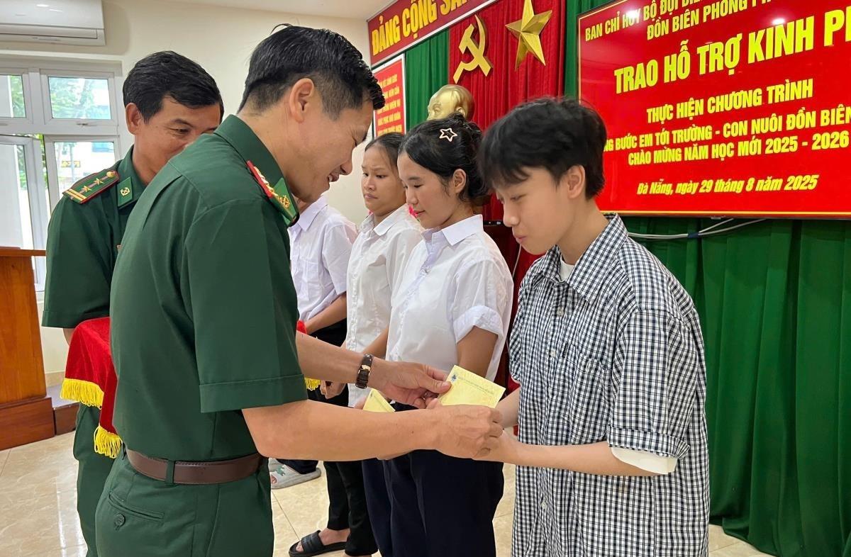 Đại tá Hoàng Văn Mẫn - Chính ủy BĐBP TP Đà Nẵng cho hay: Kể từ khi triển khai Chương trình “Nâng bước em tới trường - Con nuôi đồn biên phòng” năm 2016 đến nay, các đơn vị thuộc BĐBP TP Đà Nẵng (sáp nhập từ BĐBP tỉnh Quảng Nam và BĐBP TP Đà Nẵng) đã nhận đỡ đầu cho gần 400 học sinh (HS) ở khu vực biên giới của thành phố. Đây là những HS dù có hoàn cảnh đặc biệt khó khăn, nhưng có tinh thần ham học, nỗ lực vươn lên trong cuộc sống. Các em, các cháu con nuôi được các đơn vị đưa về chăm sóc, nuôi dưỡng; được nhận đỡ đầu diện “Nâng bước em tới trường” nhận được tiền hỗ trợ theo tháng để có điều kiện học tập tốt hơn.
