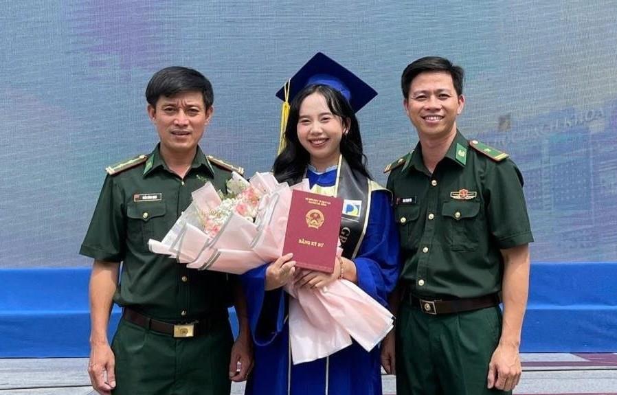 Đại tá Hoàng Văn Mẫn, Chính ủy BĐBP thành phố trao đổi: Theo quy định, Chương trình “Nâng bước em tới trường - Con nuôi đồn biên phòng” sẽ hỗ trợ các HS hết lớp 12, tuy nhiên, không ít đơn vị đã “xé rào” để tiếp tục đồng hành với các em. Điển hình, ngày 20-9 vừa qua là ngày “trọn vẹn” của cô gái Lê Việt Bảo Hàn (phường Hải Châu) khi em được nhận tấm bằng tốt nghiệp của Trường ĐHBK Đà Nẵng. Hàn là một trong 7 HS được Ban Chỉ huy BP Cửa khẩu cảng Đà Nẵng nhận đỡ đầu theo Chương trình “Nâng bước em tới trường - Con nuôi đồn biên phòng” từ năm 2016. Tốt nghiệp Trường THPT Phan Châu Trinh, em đã thi đỗ vào Trường ĐHBK Đà Nẵng (chuyên ngành Công nghệ sinh học). Với việc thường xuyên nhận được sự giúp đỡ, động viên của CBCS BP Cửa khẩu cảng Đà Nẵng cả về tinh thần và vật chất, em đã thu về những trái ngọt.