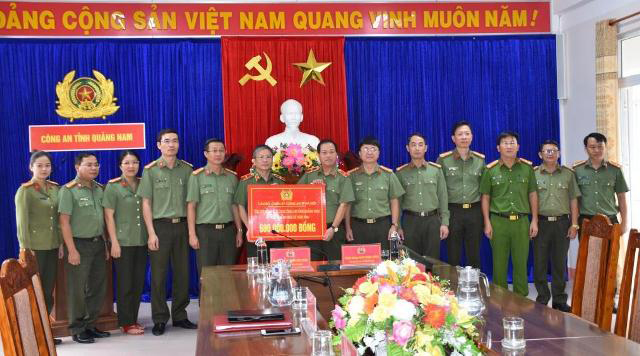QUẢNG NAM - Ngày 22-10, đoàn công tác CATP Hà Nội do Thiếu tướng Đoàn Ngọc Hùng - Phó Giám đốc CATP Hà Nội làm trưởng đoàn đã đến thăm và trao tặng 600 triệu đồng ủng hộ đồng bào, CBCS CA tỉnh Quảng Nam bị thiệt hại do mưa lũ gây ra. Đây là số tiền từ nguồn kinh phí đóng góp của CBCS CATP Hà Nội nhằm hỗ trợ đồng bào, CBCS CA các tỉnh miền Trung, trong đó có tỉnh Quảng Nam chịu ảnh hưởng nặng nề do mưa lũ thời gian qua.