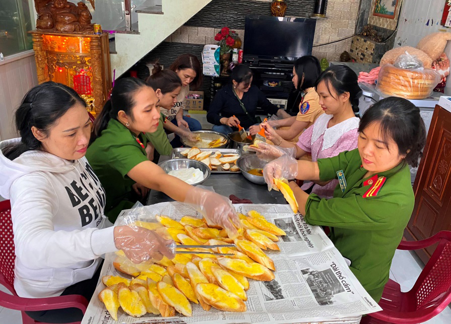 Hội Phụ nữ Công an tỉnh Quảng Nam phối hợp làm 1.500 suất bánh mì gửi tặng người dân vùng lũ tỉnh Quảng Bình. |