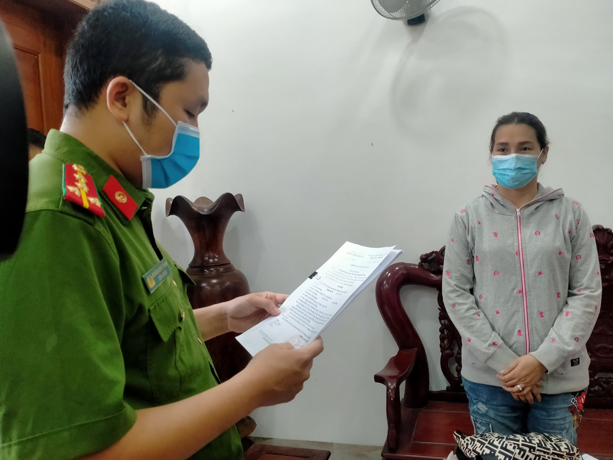 Cơ quan CSĐT CATP Đà Nẵng đọc lệnh bắt Trần Thu Hà. |