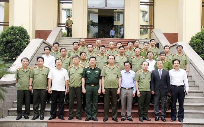 | Ban tổ chức quốc gia kỷ niệm 70 năm Ngày truyền thống CAND Việt Nam và 10 năm Ngày Hội toàn dân bảo vệ an ninh Tổ quốc chụp ảnh lưu niệm. |
