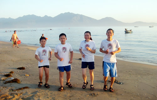 | Hoạt động thể thao ngoài trời của gia đình chị Hòa góp phần tiết kiệm điện. |