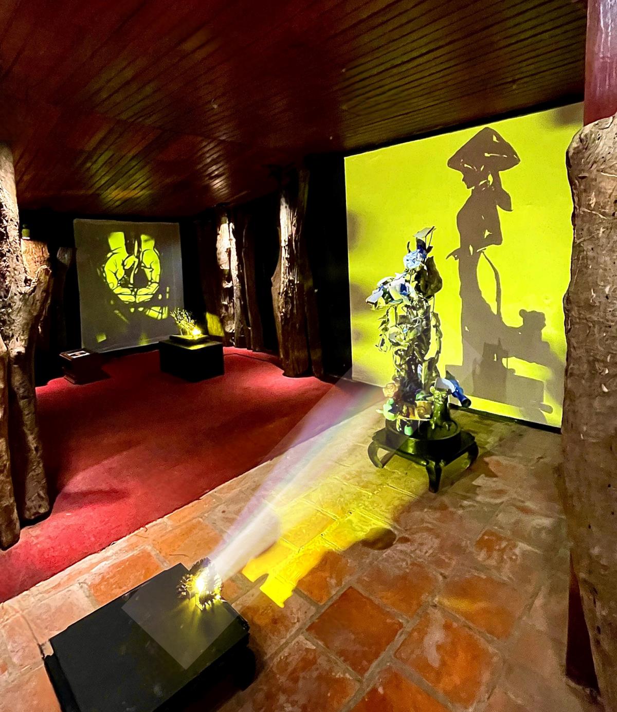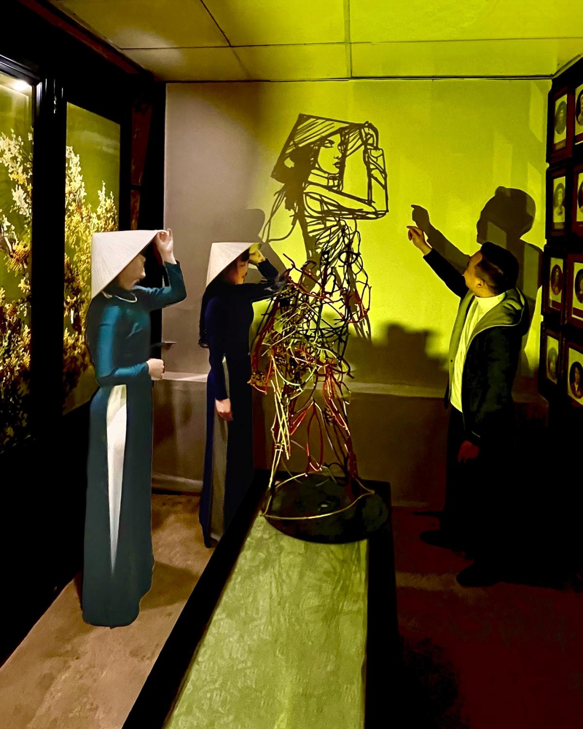 Thoạt trông, ở môi trường ánh sáng đều khắp (ánh sáng mặt trời, ánh sáng đèn điện, ánh sáng ngọn nến...), chúng chỉ là những khối hình kỳ dị. Nhưng khi rọi thẳng nguồn sáng một chiều vào những khối hình kỳ dị đó, phần hắt bóng của chúng lập tức trở thành những tác phẩm nghệ thuật. Trong không gian Bảo tàng Hoa XQ Sử Quán, qua những ray sáng một chiều, bóng ảnh chân dung những nghệ nhân thêu, nghệ nhân gốm, cùng các doanh nhân - những người lúc rạng rỡ, khi âm thầm đang ngày đêm kiến tạo những giá trị văn hóa Việt - lần lượt xuất hiện ở phía tường đối diện sau mỗi cú bật đèn rọi sáng của anh. Nghệ sĩ Bùi Văn Tự gọi thủ pháp nghệ thuật của mình là nghệ thuật điêu - khắc-ánh - sáng.