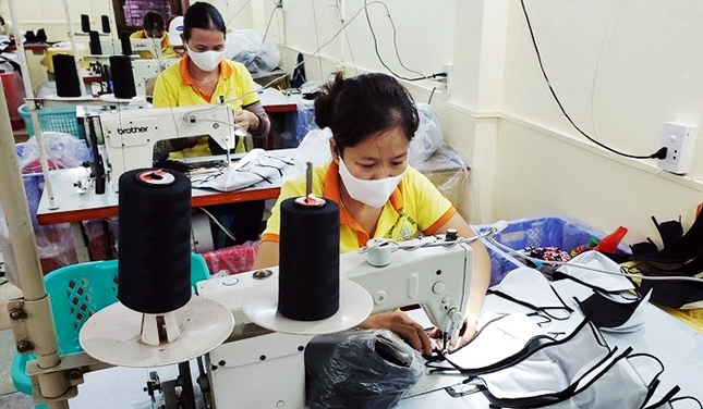 Sản xuất khẩu trang vải kháng khuẩn xuất khẩu tại Cty TNHH Sản xuất – Chế biến – Kinh doanh – XNK Hương Quế. |
