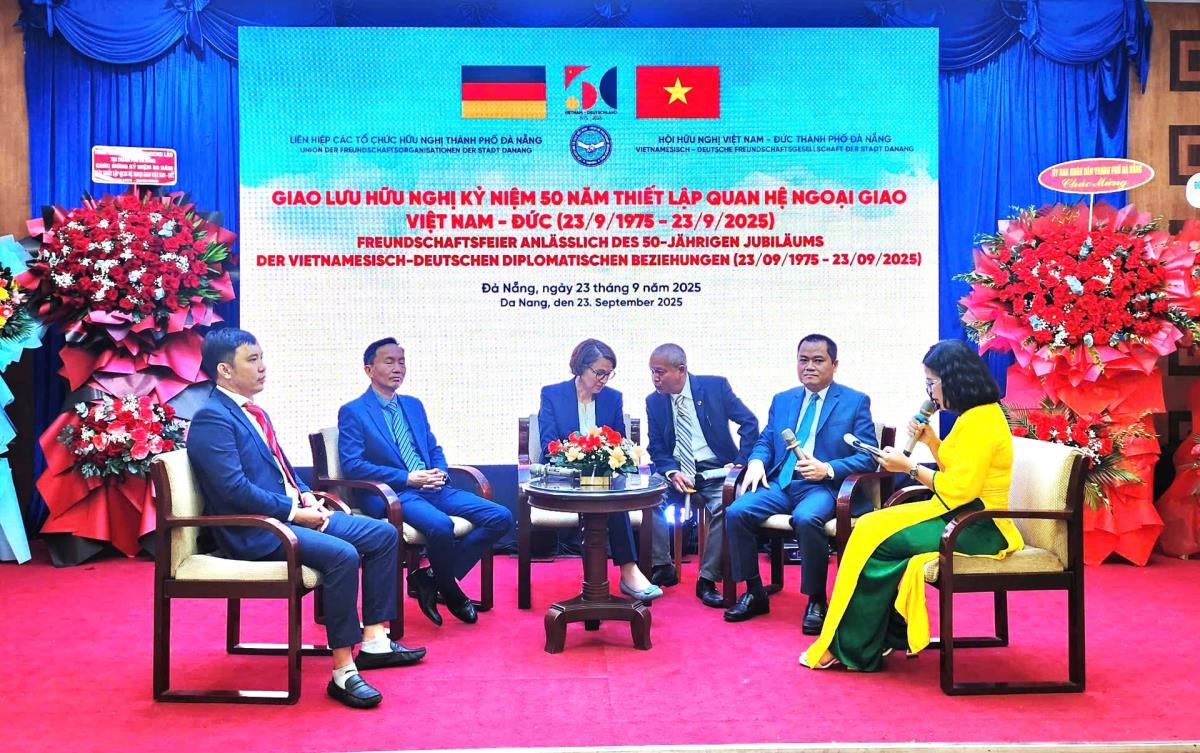 Chiều 23-9, Liên hiệp các tổ chức hữu nghị thành phố Đà Nẵng và Hội hữu nghị Việt Nam - Đức thành phố tổ chức Chương trình giao lưu hữu nghị nhân kỷ niệm 50 năm ngày thiết lập quan hệ ngoại giao Việt Nam - Đức (23-9-1975 - 23-9-2025). Phó Chủ tịch UBND thành phố Nguyễn Thị Anh Thi đến dự.