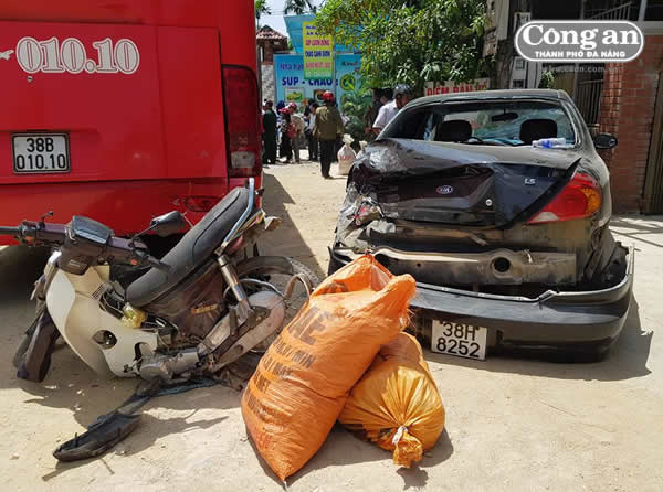 (Cadn.com.vn) - HÀ TĨNH- Khoảng 11 giờ 45 ngày 9-7, trên đường Hồ Chí Minh (đoạn qua xã Hương Long, H. Hương Khê) xe container mang BKS 34C- 103.69 do Hoàng Ngọc Anh (1978, trú TP Hải Dương) điều khiển va chạm vào phía sau ô-tô 4 chỗ BKS 38H-8252 do anh Phan Trung Hiếu (trú xã Hương Long) điều khiển chạy cùng chiều. Vụ va chạm làm ô-tô 4 chỗ mất lái lao sang bên phải đường và tông vào xe máy BKS 38Y1-1129 khiến chiếc xe máy lao vào xe khách BKS 010.10 đang đậu bên đường. Rất may, vụ tai nạn liên hoàn này không gây thương tích về người; ô-tô 4 chỗ và xe máy hư hỏng nặng.