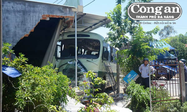 (Cadn.com.vn) - QUẢNG NAM- Trưa 10-7, xe buýt BKS 92B-005.41 do tài xế Nguyễn Văn Tại (trú H. Núi Thành) điều khiển lưu thông đến đoạn Km1005 QL1A qua xã Tam Anh Bắc (H. Núi Thành) thì bị xe tải BKS 74C-03159 do Nguyễn Ngọc Thành (trú TP Đồng Hới, Quảng Bình) điều khiển lưu thông cùng chiều tông mạnh từ phía sau. Cú va chạm mạnh làm xe buýt lao vào tông sập tường phòng khách nhà ông Đặng Văn Quyền. Rất may, vụ tai nạn không gây thiệt hại về người.